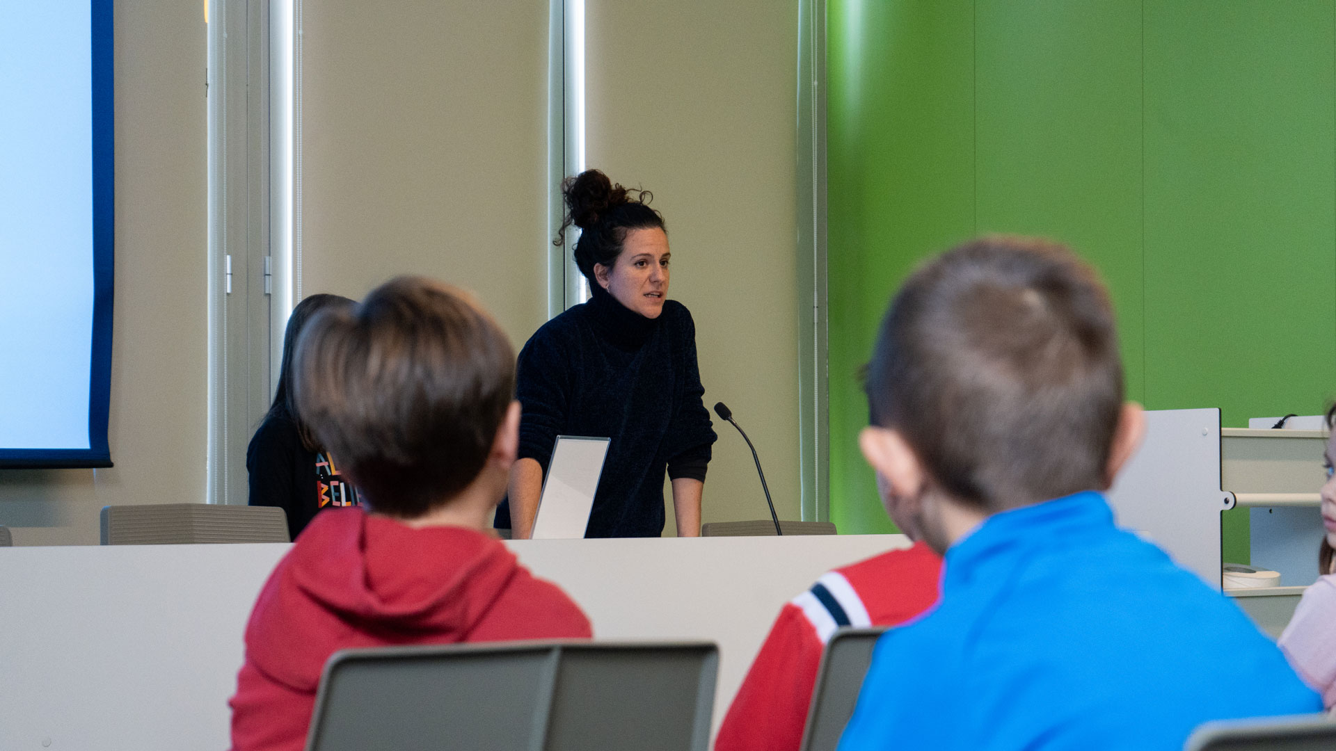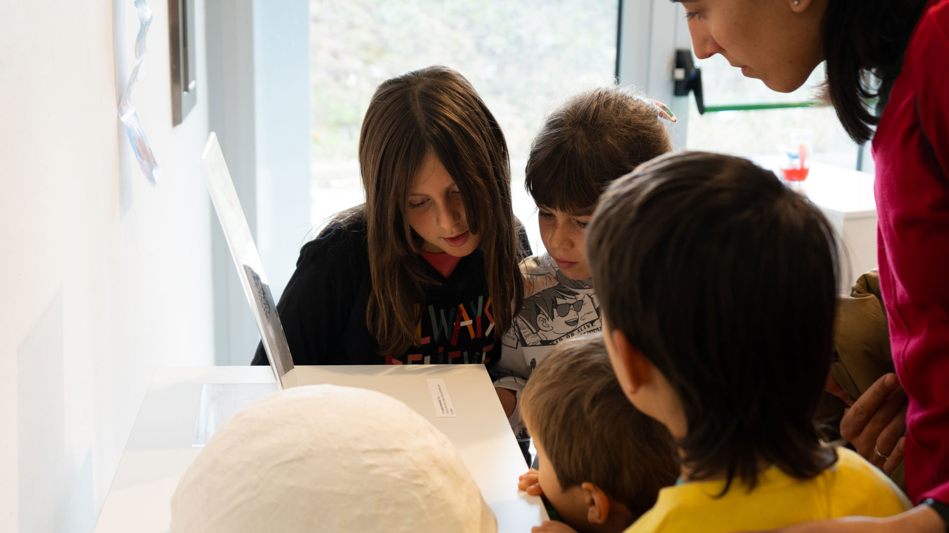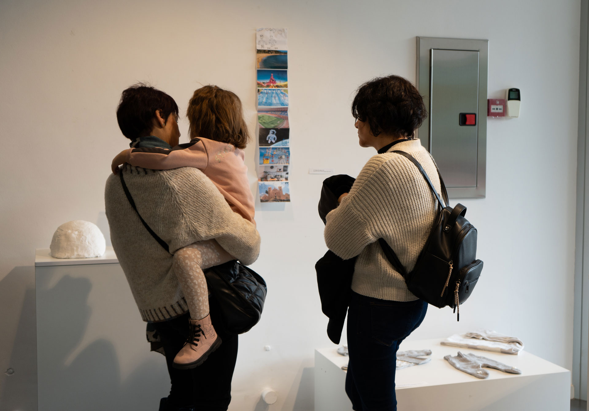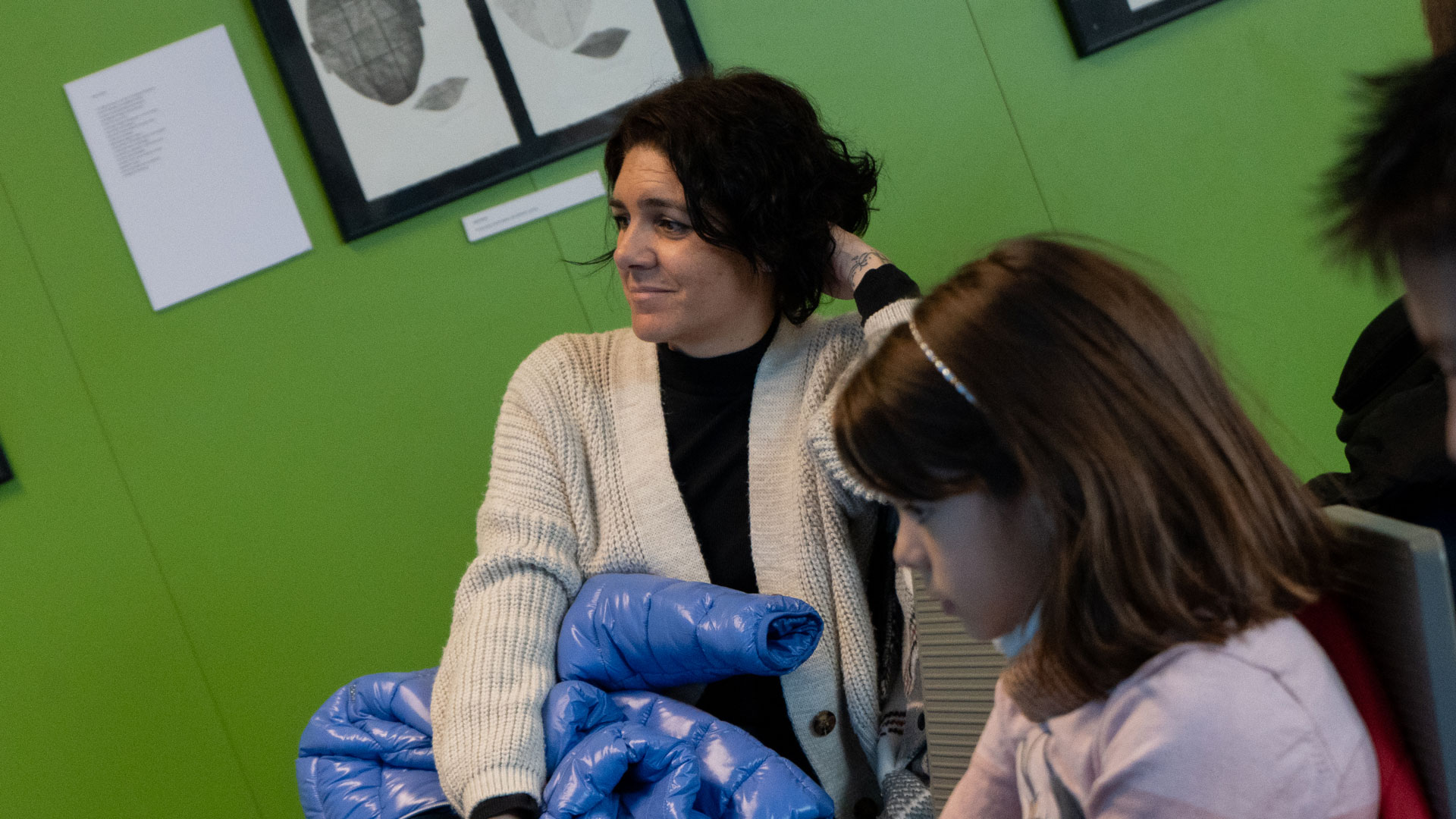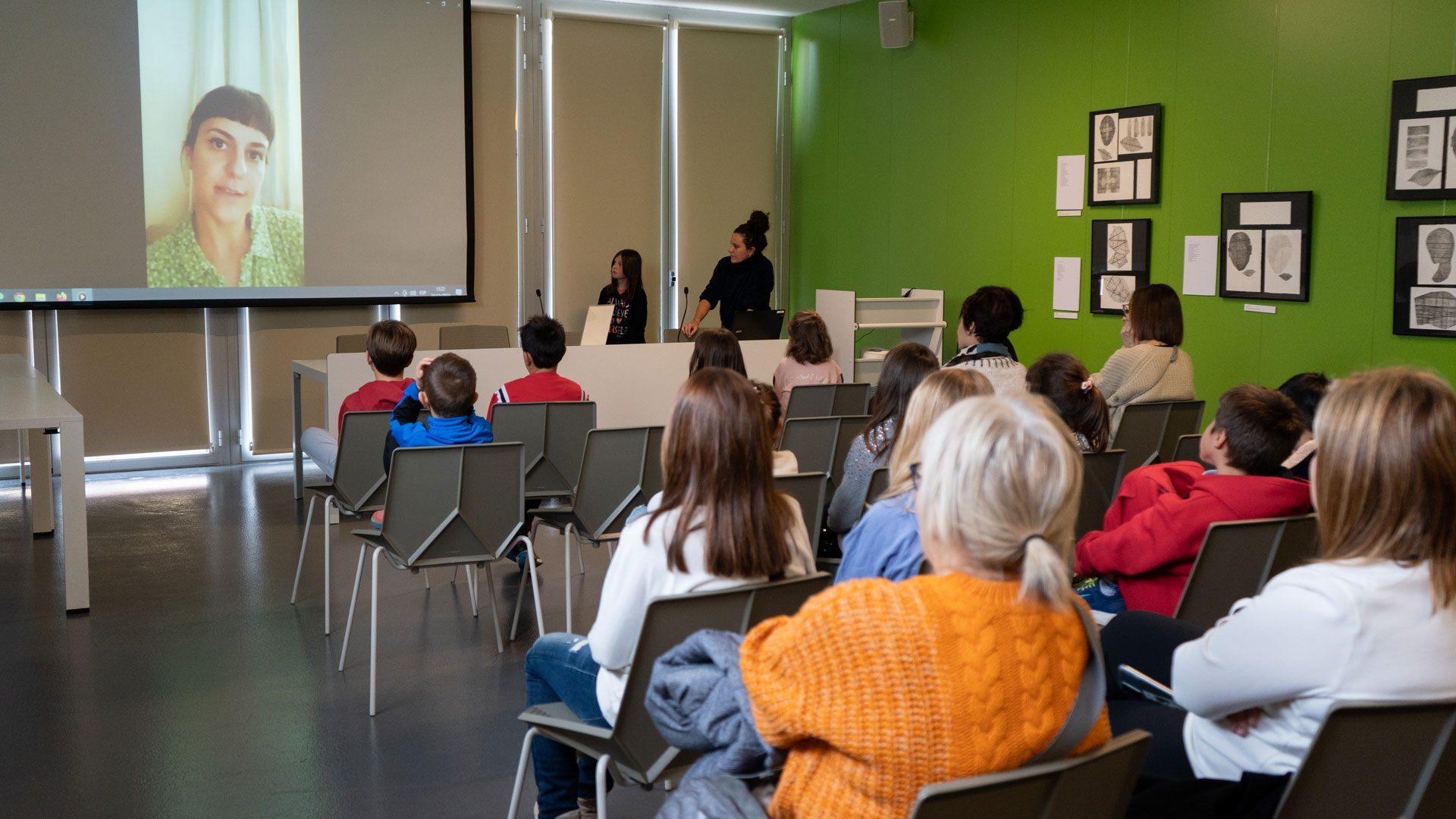 A l’escola, l’alumnat la va entrevistar, tot parlant de temes com l’embaràs, la mort perinatal, la gestió de la pèrdua o el record de la filla. També, juntament amb la coordinadora del projecte, la Sheila, i la tutora del grup, la Jordina Subirana, es va oferir a l’alumnat una llarga llista d’artistes contemporanis que, d’una manera o altra, havien treballat o treballen temes com la infantesa, la maternitat o el dol, inclosa la Yas Recht, autora del llibre “Yo no te perdí”, d’on s’inspira el títol de la mostra.